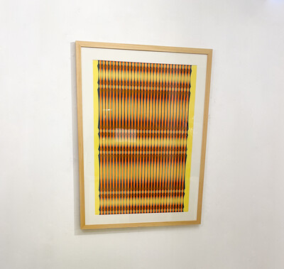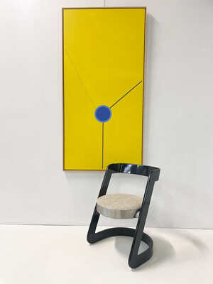 Sculptuure in yellow lacquered metal by Geneviève CLAISSE (1935-2018),"Mouvement stationnaire"