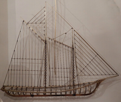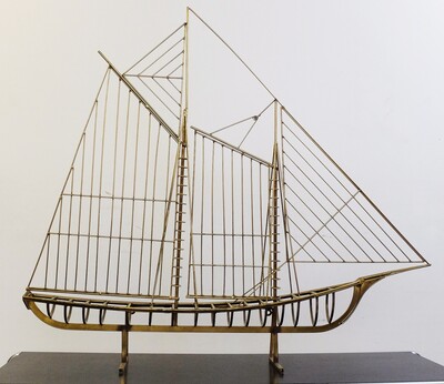Long Brass 1976 Curtis Jere Sail Boat Sculpture