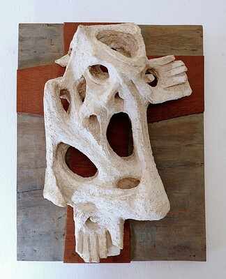"Christus" Terracotta sculpture on wood panel by Klaas Pijlman (1917-2007)
