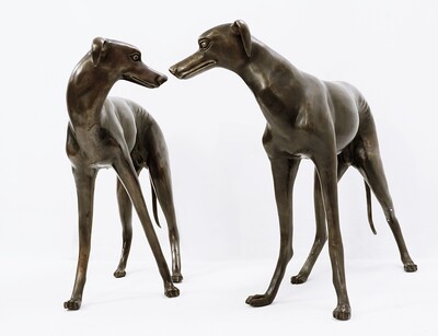 Pair of Mid-Century Italian Polychrome Glazed Terracotta Greyhounds