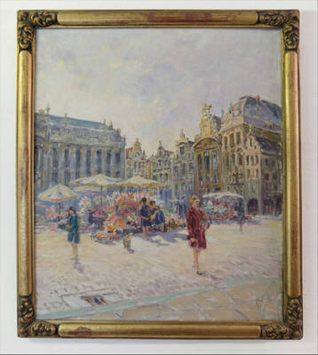 Pierre De Win "Marché Sainte Catherine" painting on canvas