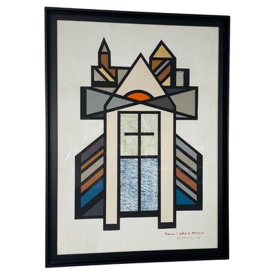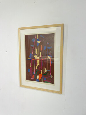 Abstract Composition Gouache on Paper, Miodrag, Signed