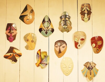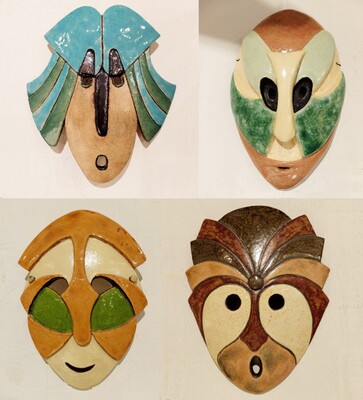 set of Ceramic masks by Janine louvet Laruelle - Belgium - 1990