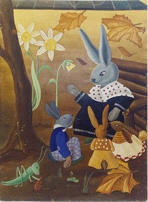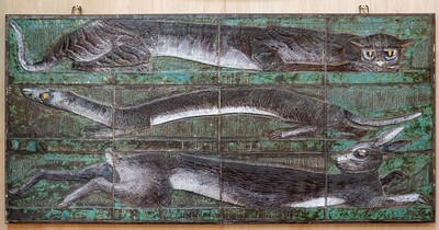 Mid-century "Le Chat, la Belette et le Petit Lapin" ceramic Panel
