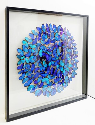 Morphos Butterflies Under Square Glass Frame - Philippe E.
