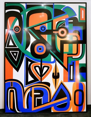 Mid-century Georges Vaxelaire Oil on Canvas, Geometric Composition, Belgium, 1976