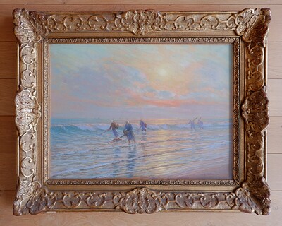 Paul Mathieu (1872 - 1932) "Le dragueur" - painting on panel/Belgian School