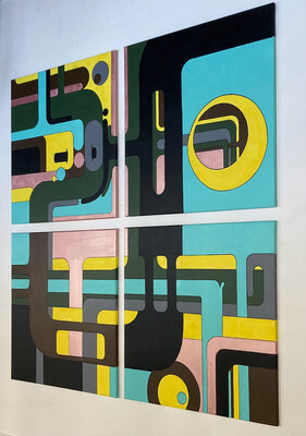 "The exchanger" by Raphael Rousseau, quadriptych, acrylic on canvas