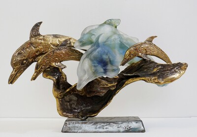 Y. Lohe, Bronze Sculpture And Glass Paste, "the Dolphins"