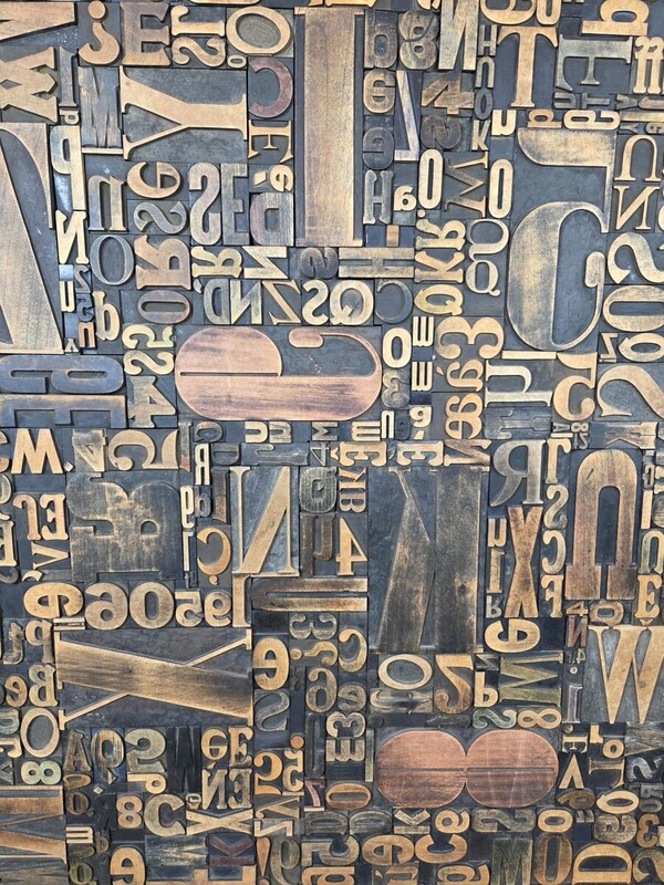 Decorative Wooden Panel adorned with Antique Printing Letters, 1 Available