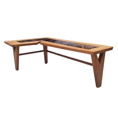 Boomerang coffee table in oak and ceramic by Boleslaw Danikowski with Guillerme & Chambron for "Votre Maison" editor - France c.1960s