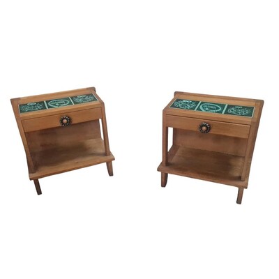 Pair of nightstands in oak and ceramic by Boleslaw Danikowski with Guillerme & Chambron for "Votre Maison" editor - France c.1950s