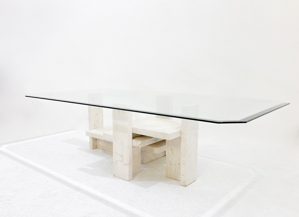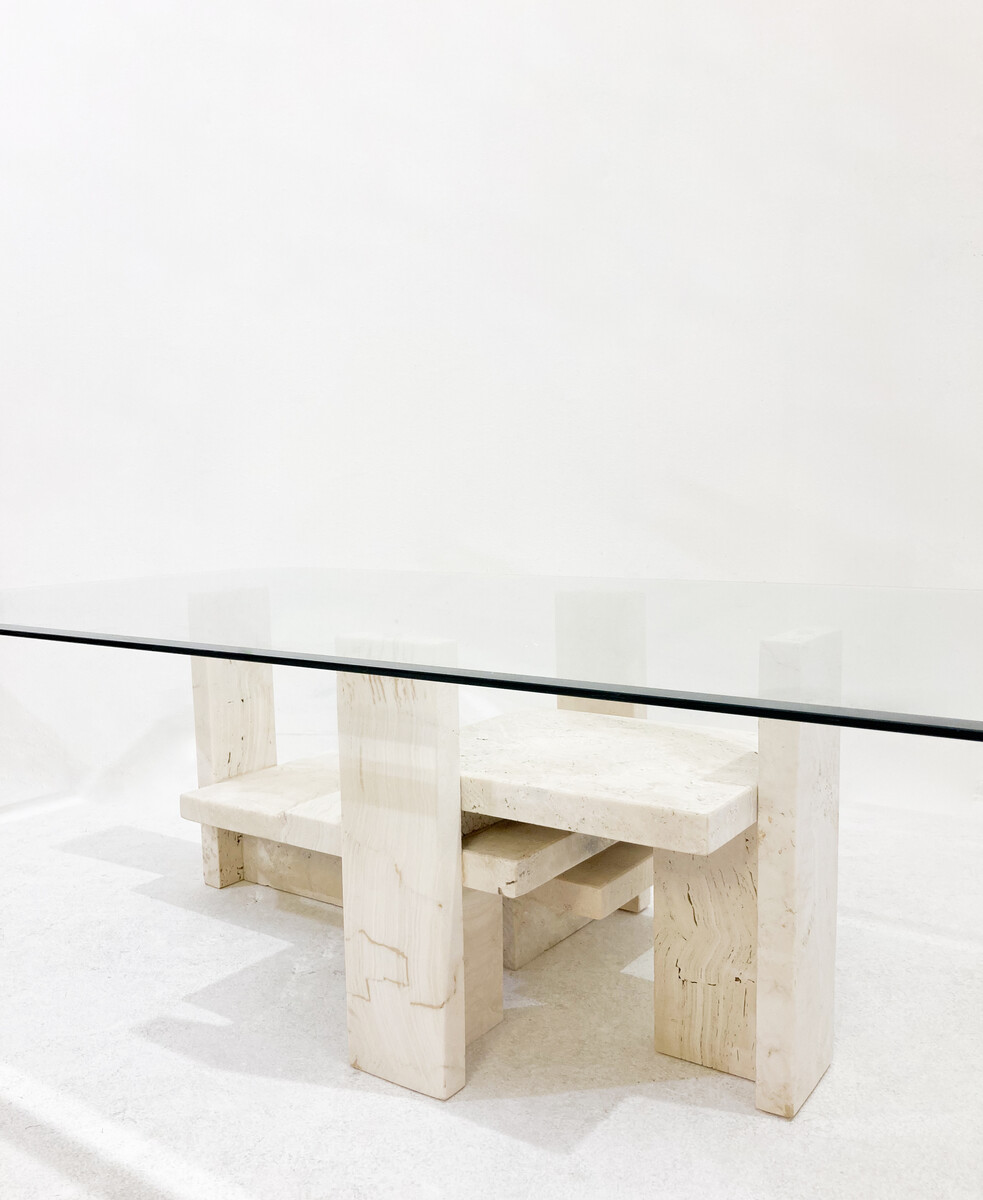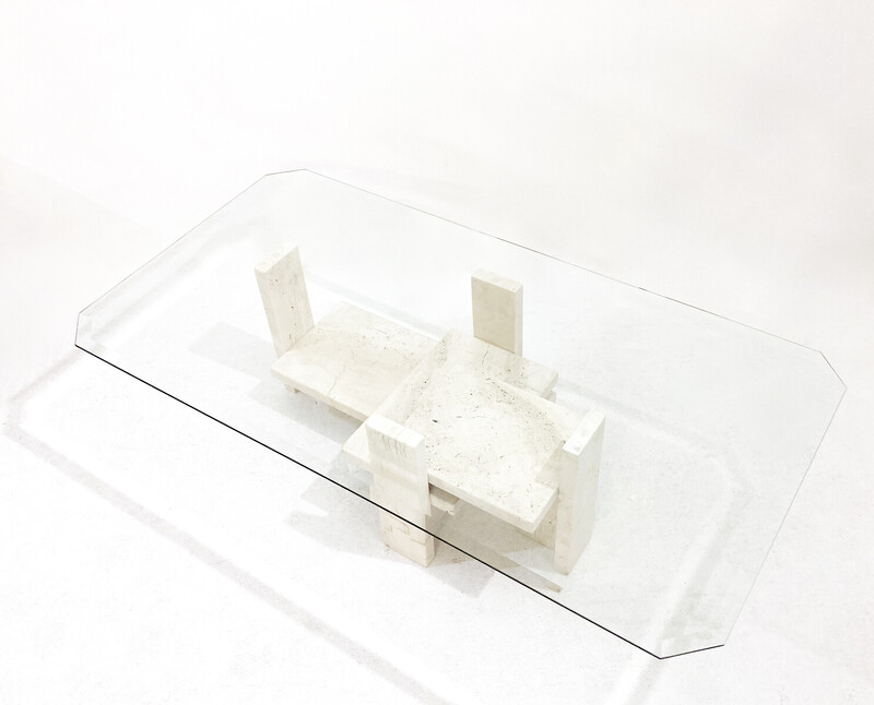 Mid-Century Modern Glass and Travertine Coffee Table, Willy Ballez, 1970s