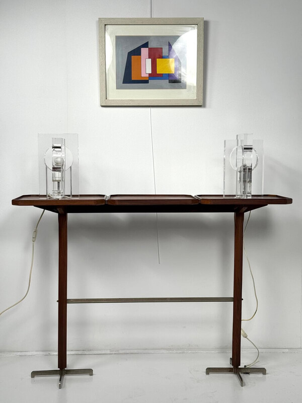 Mid-Century Modern Console, Wood and Chrome Metal, Italy, 1970s