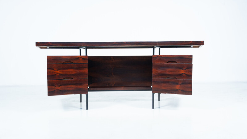 Mid-Century Modern Italian Wooden Desk with Drawers, 1960s