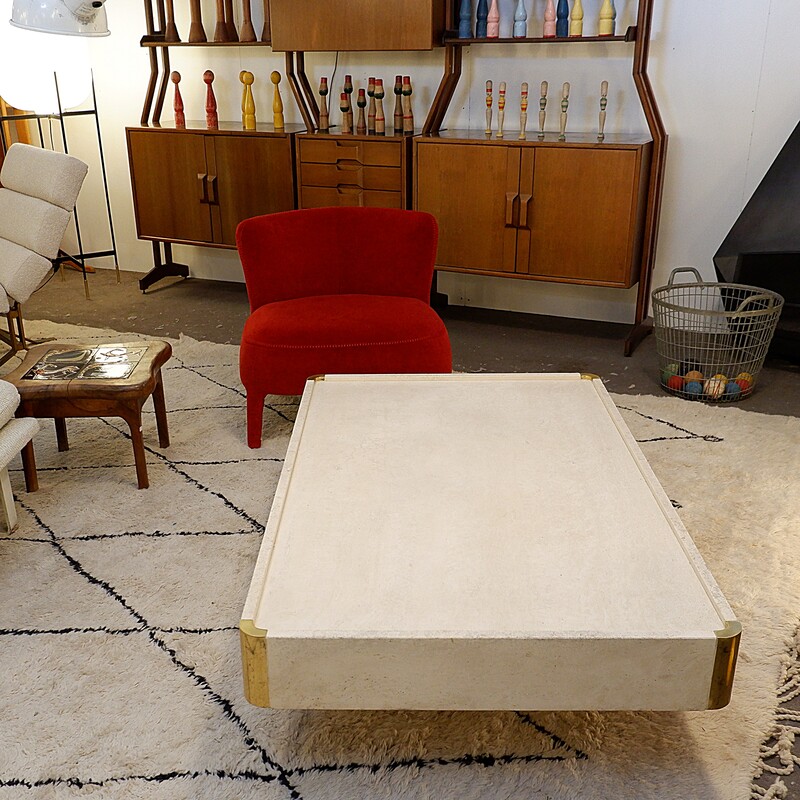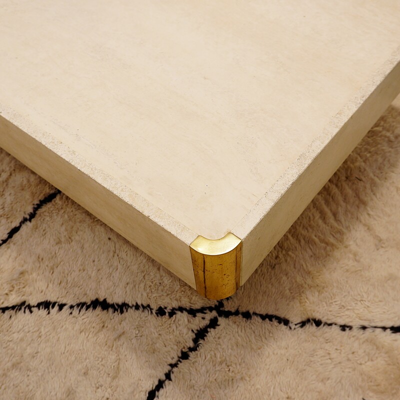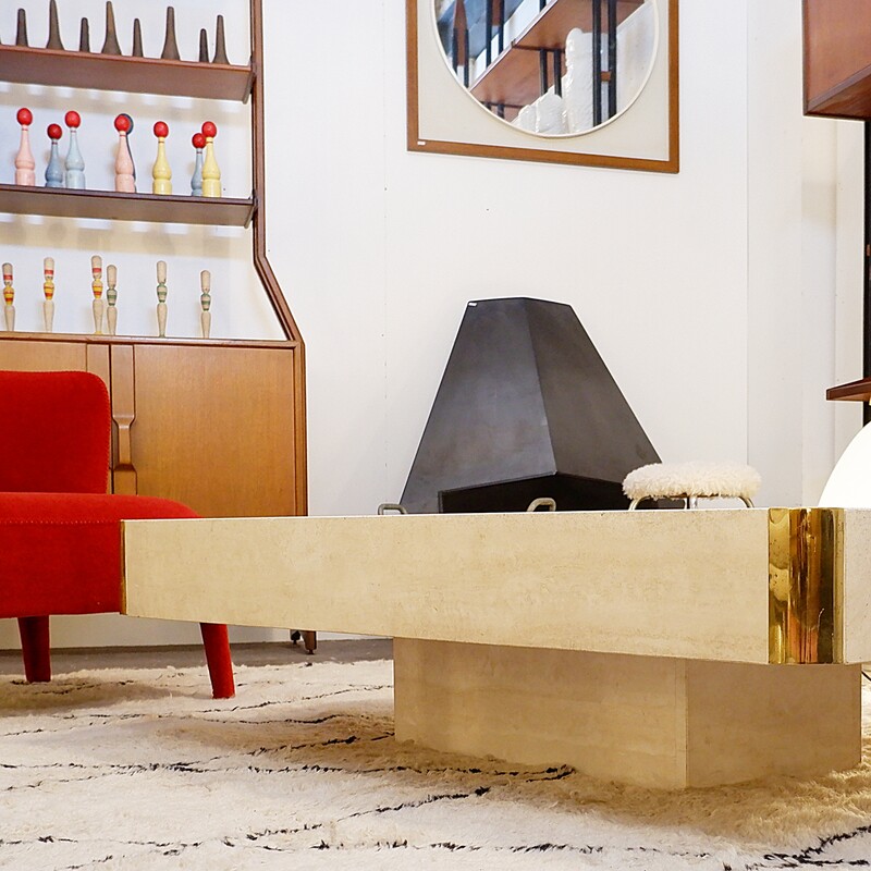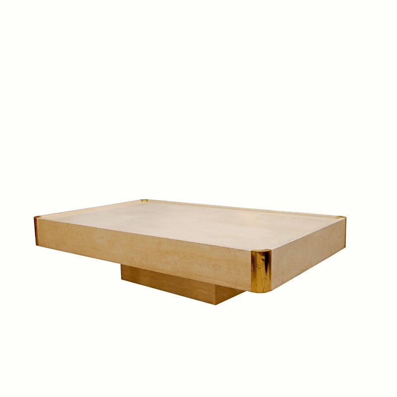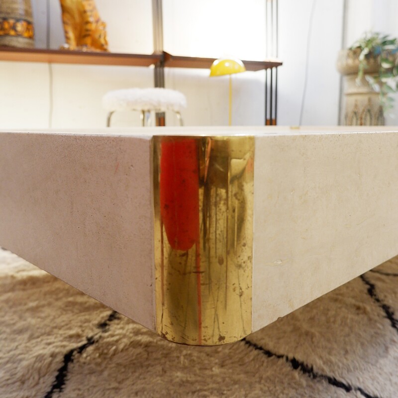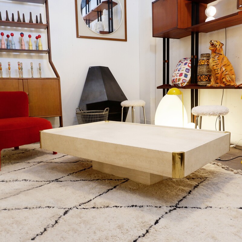 Travertine and brass coffee table attributed to Willy Rizzo - 1970s