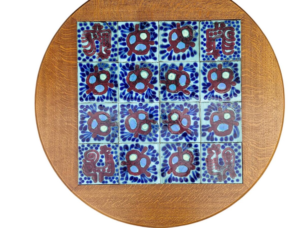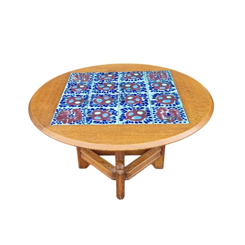 Coffee table with ajdustable height model Ladislas in oak and ceramic by Boleslaw Danikowski with Guillerme & Chambron for "Votre Maison" editor - France c.1960s