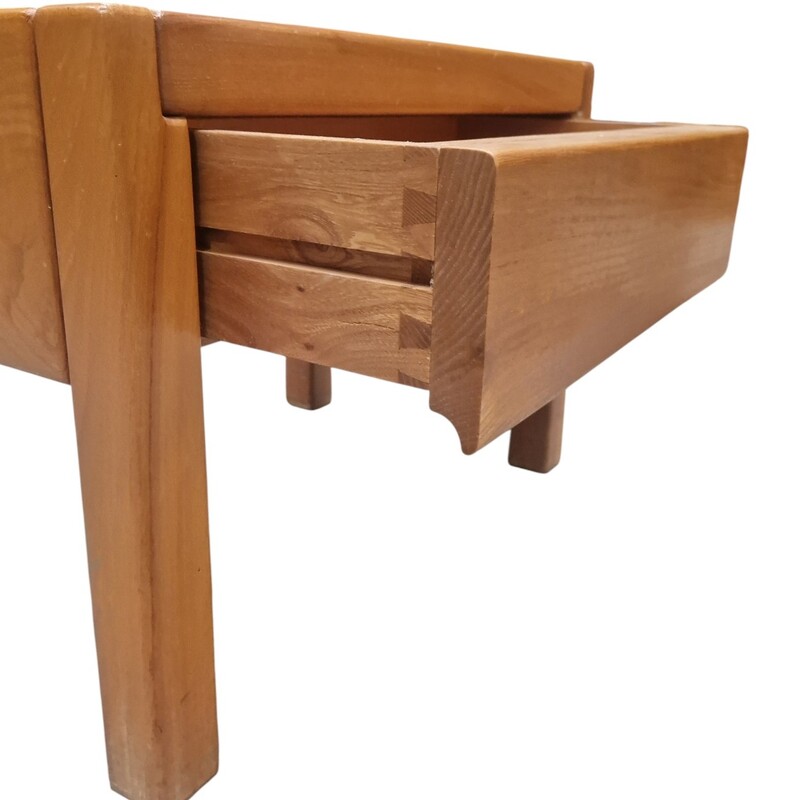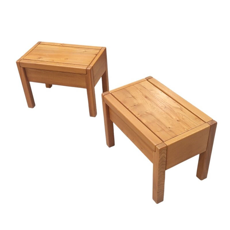 Pair of vintage side tables in solid elm, "Maison Regain" edition, France, circa 1980