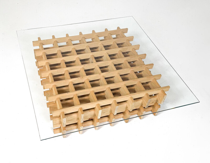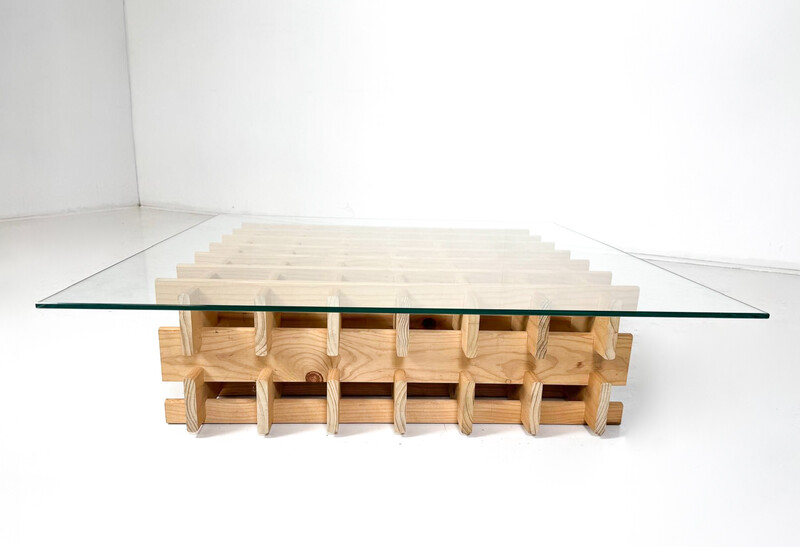 Mid-Century Modern Italian Coffee Table, Wooden Grid and Glass, 1960s
