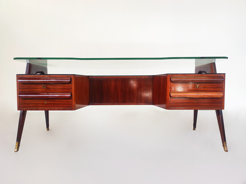 Mid-Century Modern Vittorio Dassi Desk, Wood and Glass, 1950s