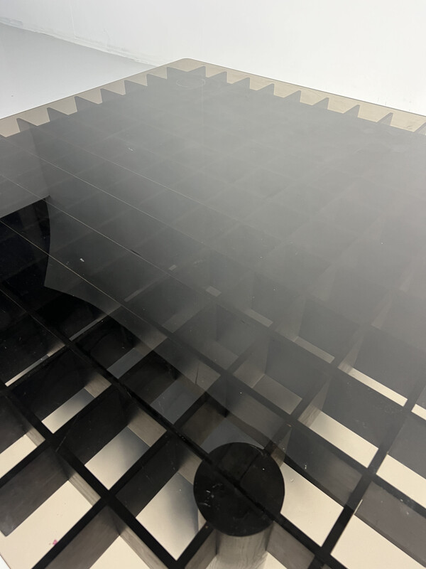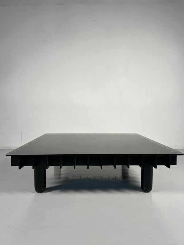 Mid-Century Black Wood and Glass Coffee Table in the style of Gianfranco Frattini, Italy, 1970s