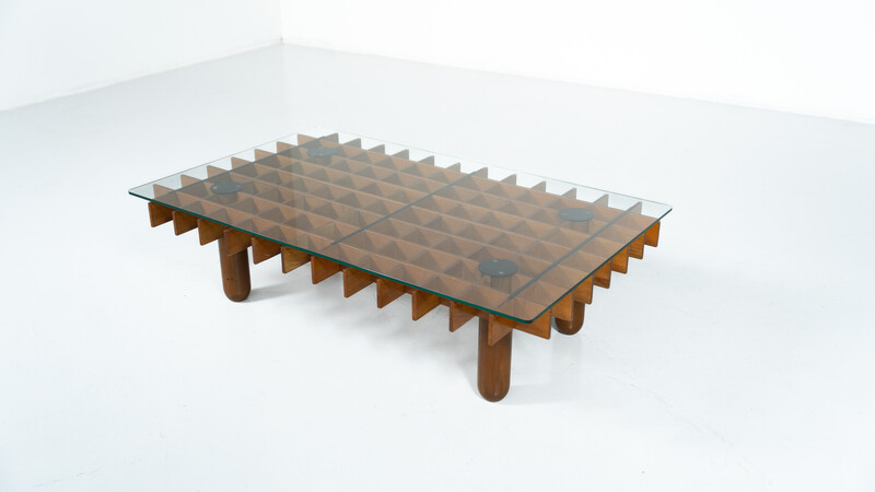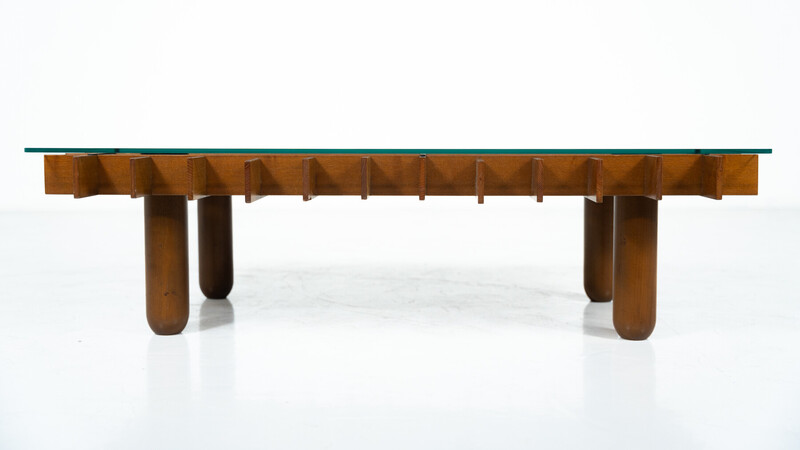 Mid-Century Coffee table, Wood and Glass, in the style of Gianfranco Frattini, 1960s