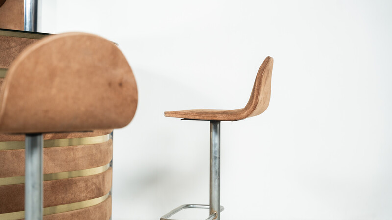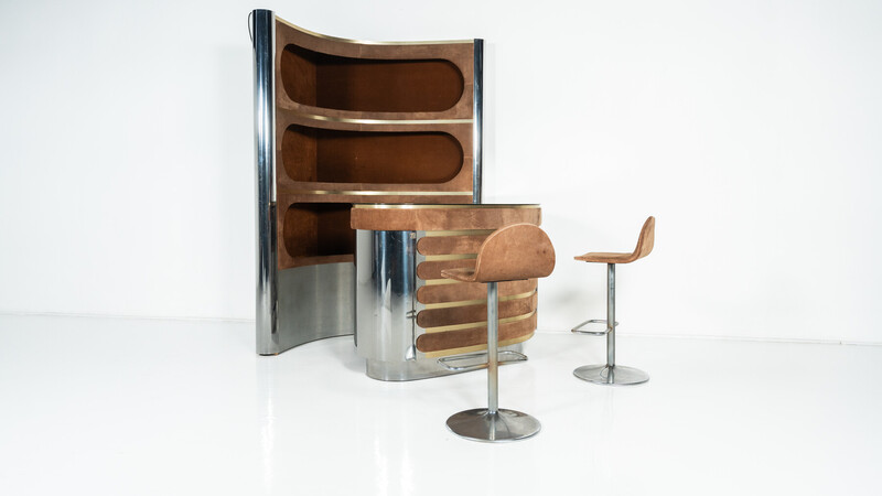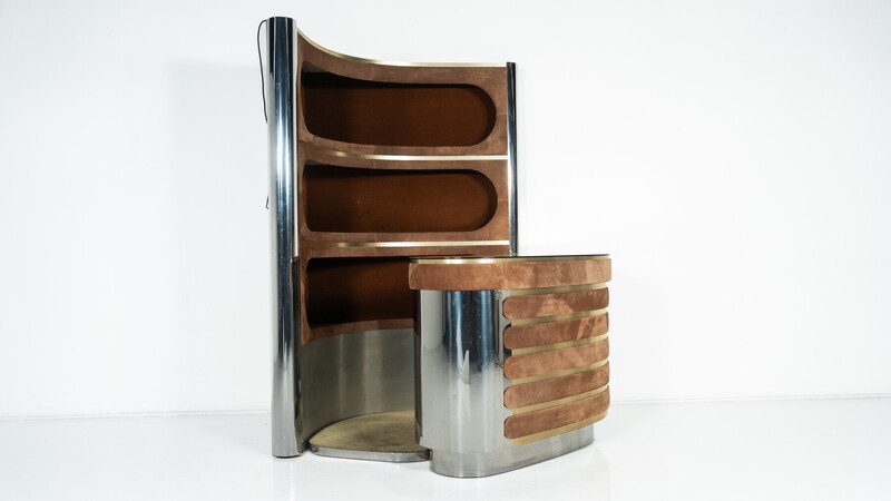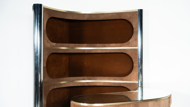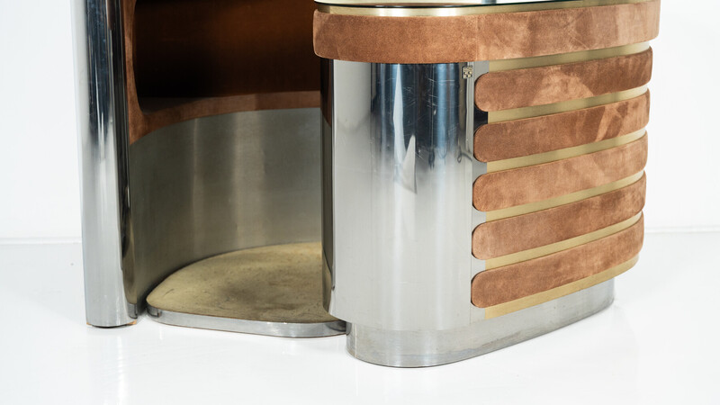 Mid-Century Modern Suede Bar by Willy Rizzo, Italy, 1970s