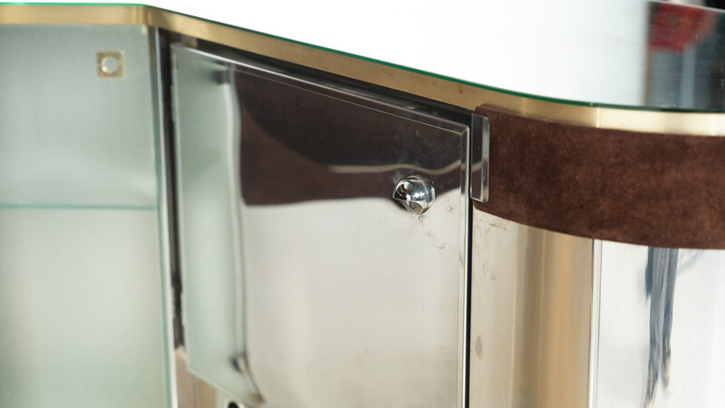 Mid-Century Modern Suede Bar by Willy Rizzo, Italy, 1970s