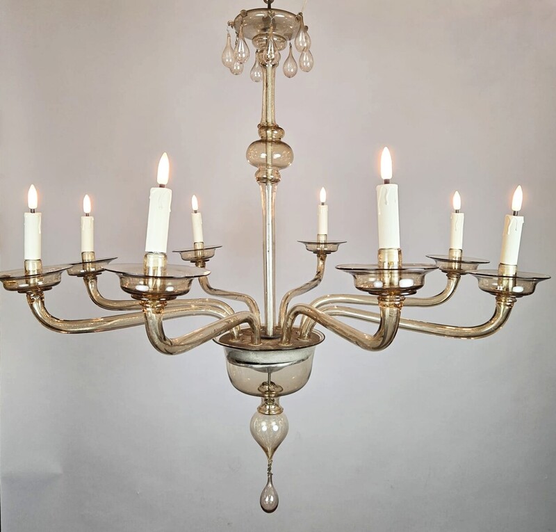 Zecchin, Murano Chandelier with Smoked Glass Sconces, 1920