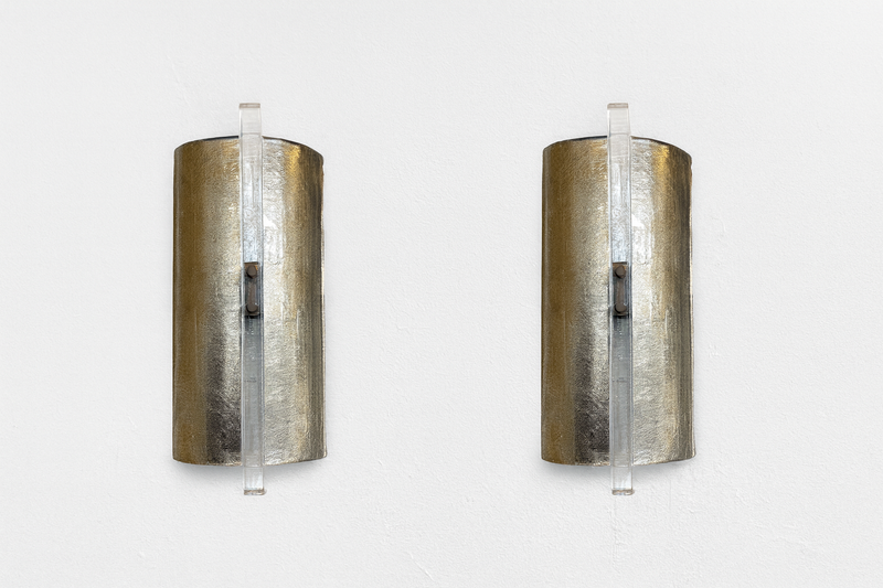Contemporary Pair of Silver Wall Lights, Glass, Italy