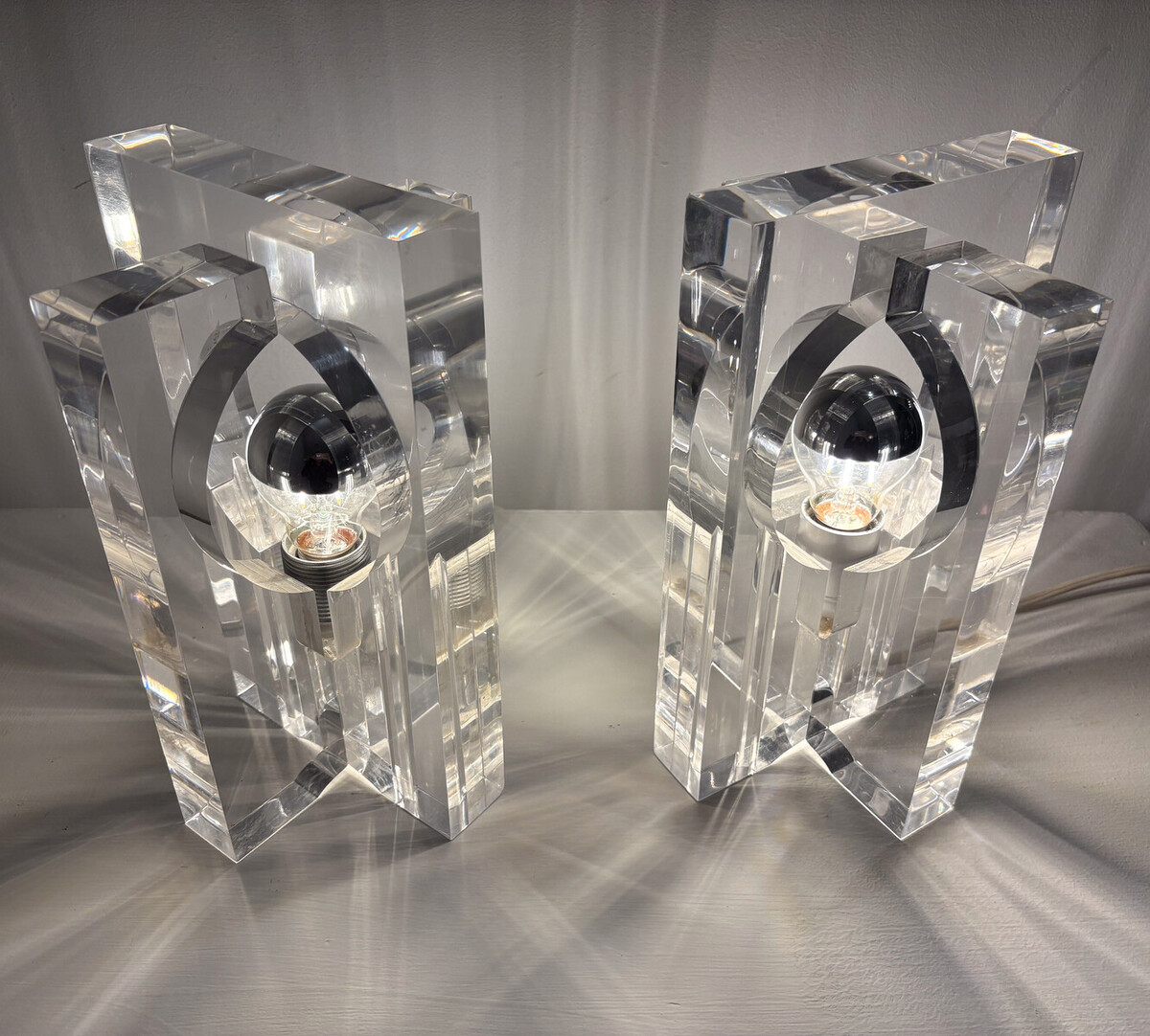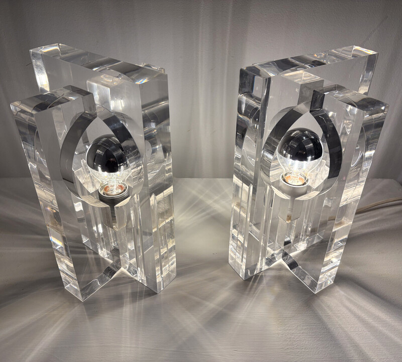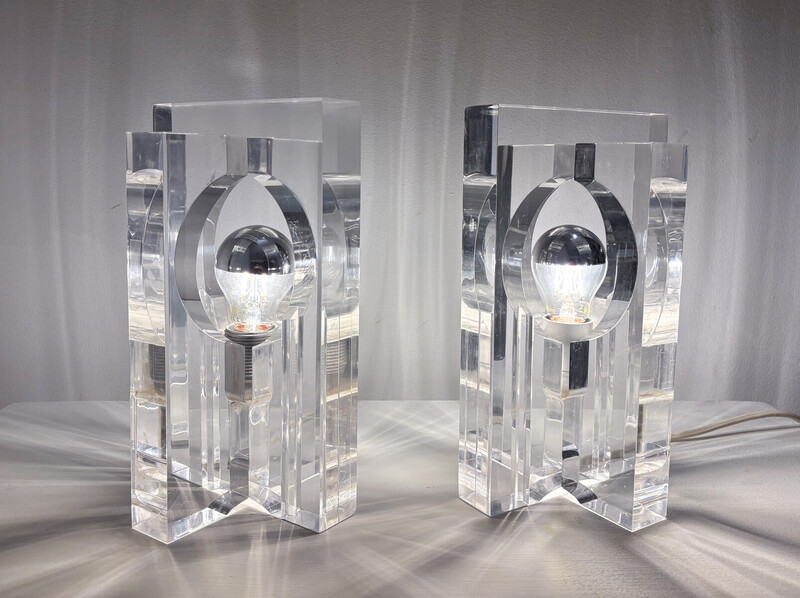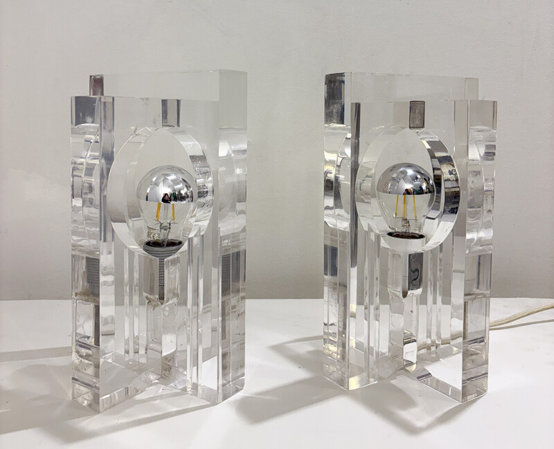 Pair of Lucite Table Lamps by Sandro Petti, 1970s