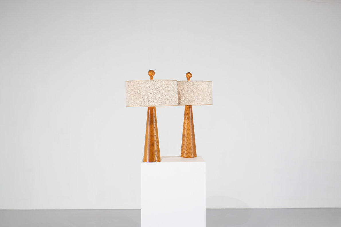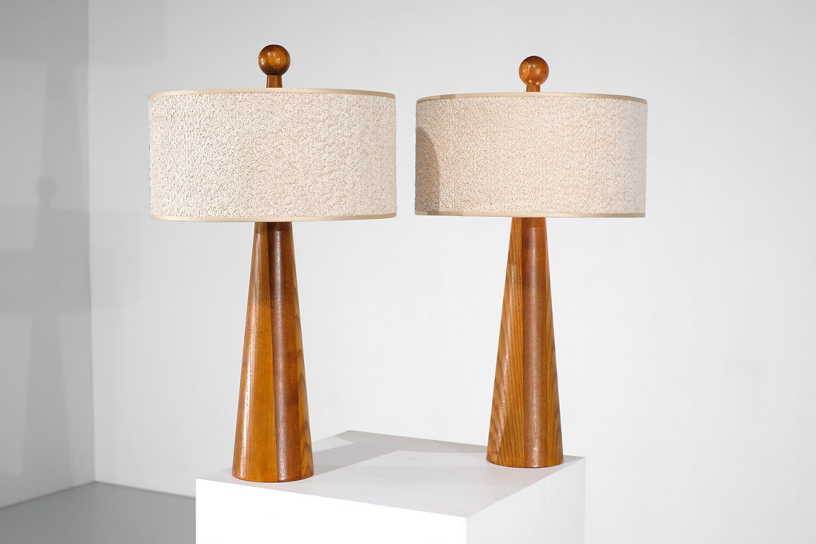 Pair of table lights in wood, Italy years 2020s