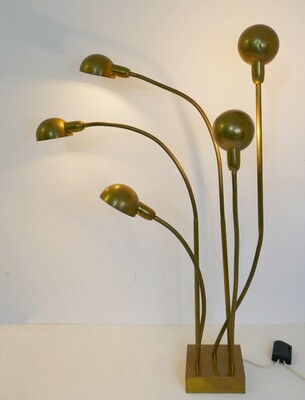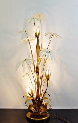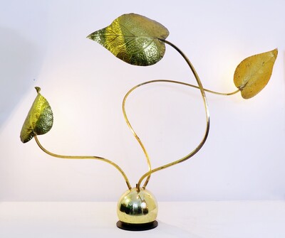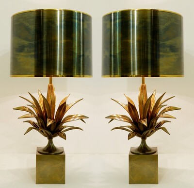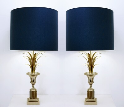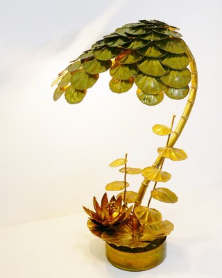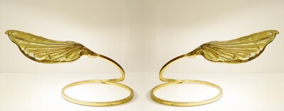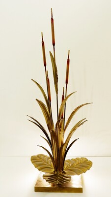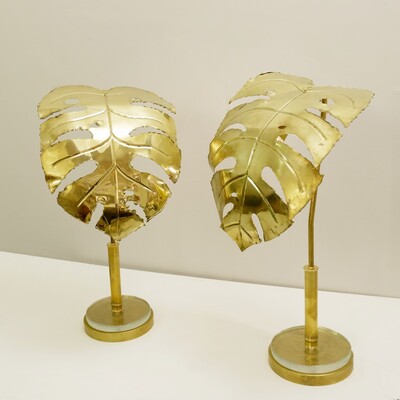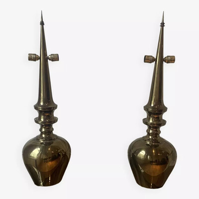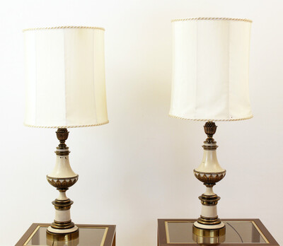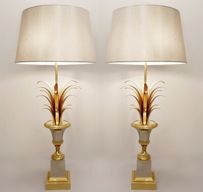 pair of brass and enameled steel corn table lamps -1970’s