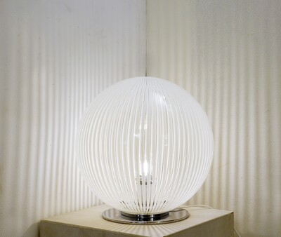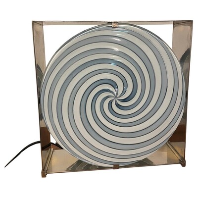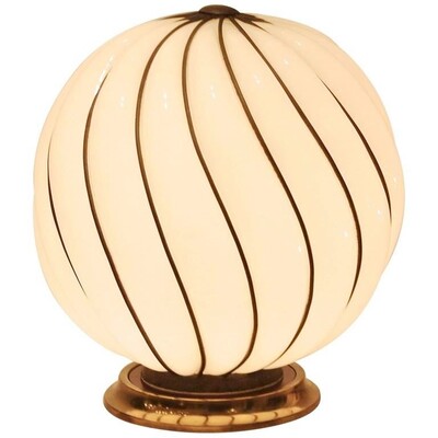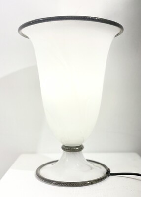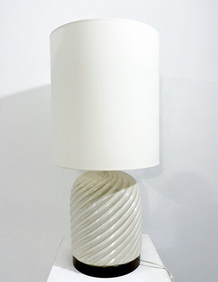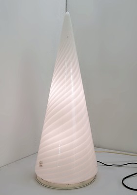 Large Vintage Murano Glass Vetri Table Lamp Conical White Swirl