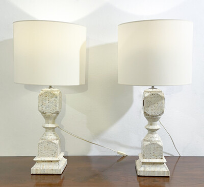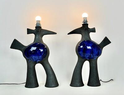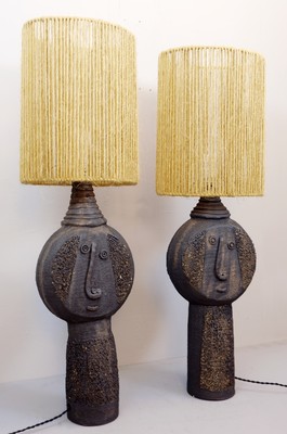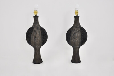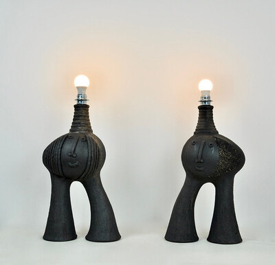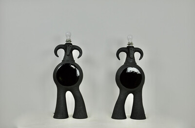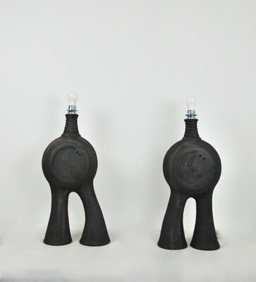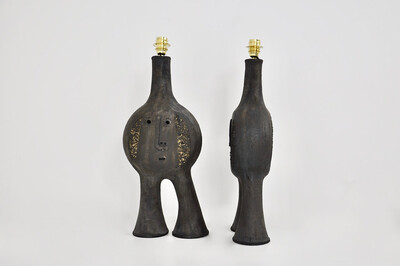 Pair of ceramic table lamp by Dominique Pouchain - french, signed