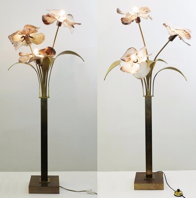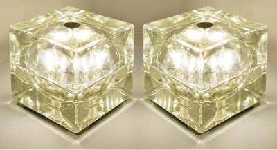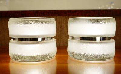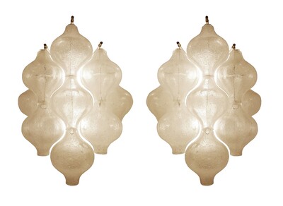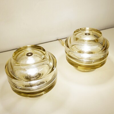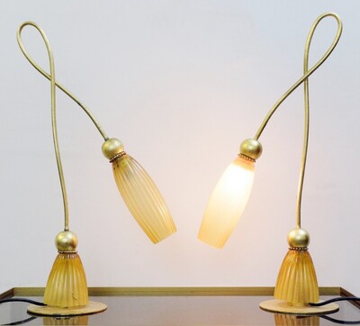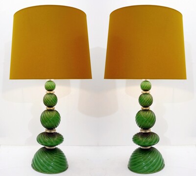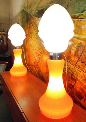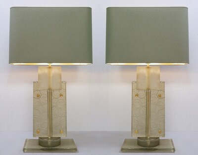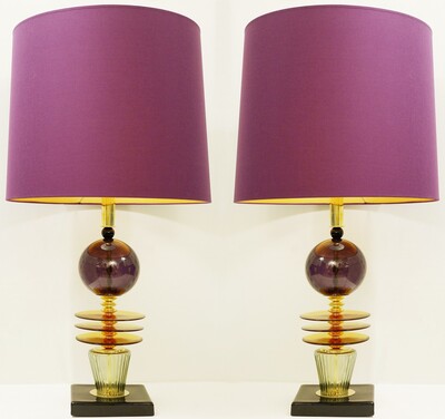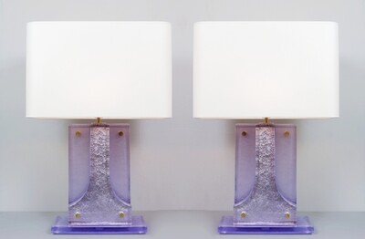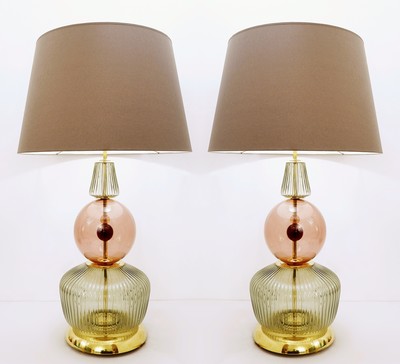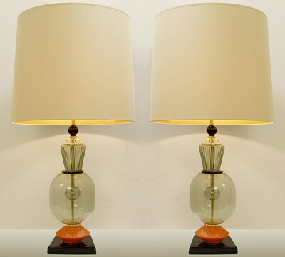 Pair Of Italian Murano Lamps In colored sandblasted glass