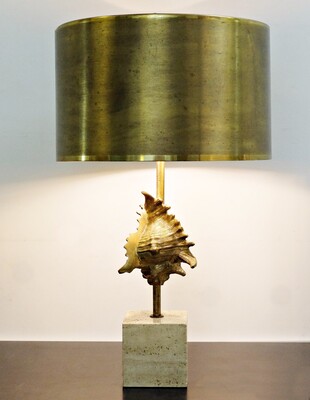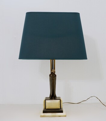 bronze, marble and brass large sculpture table lamp