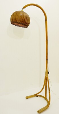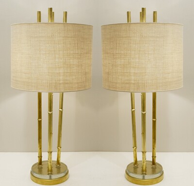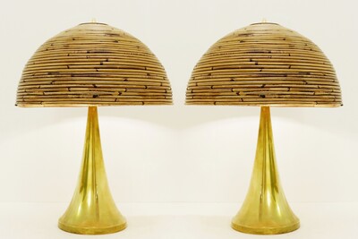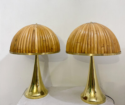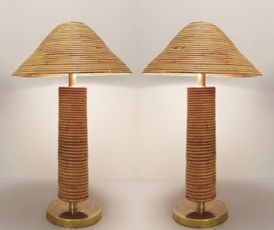 Pair of Modern Brass and Bamboo Table Lamps, Italy