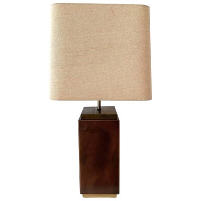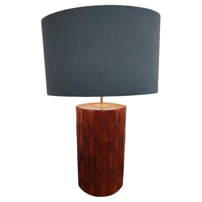 Mid-Century Modern Brown Leather Table Lamp