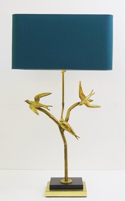 gold metal bird table lamp