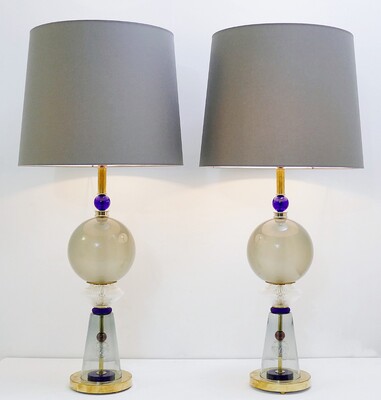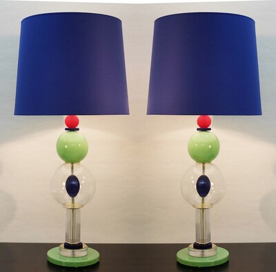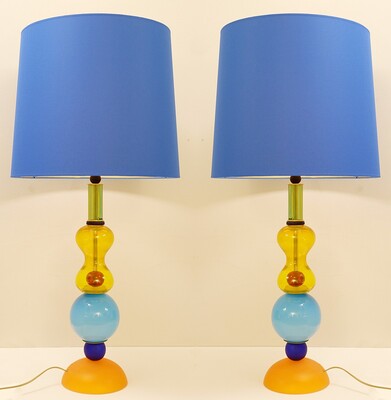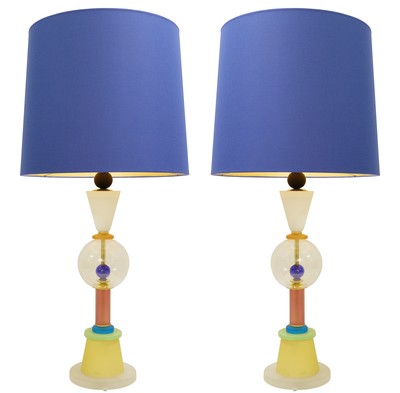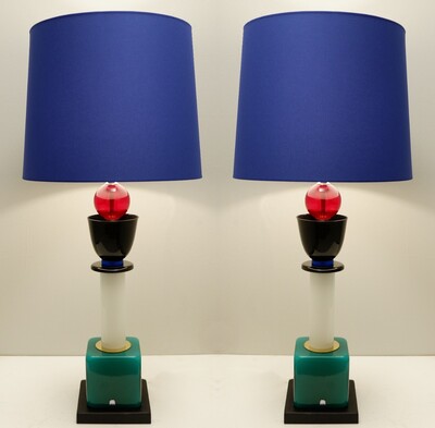 Pair of Memphis style Table Lamps in Handblown Murano Glass