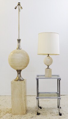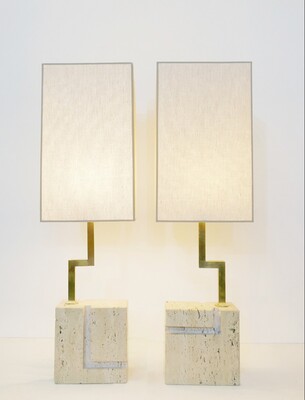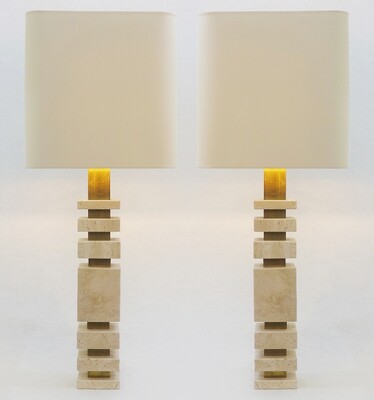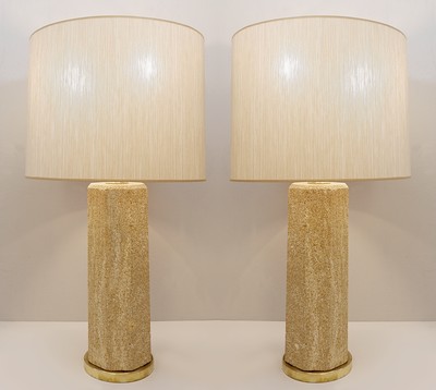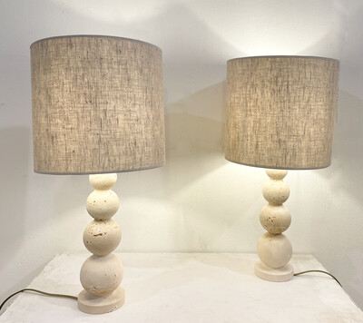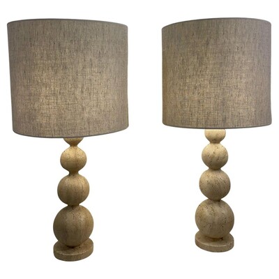 Contemporary Pair of Travertine Lamps, Italy
