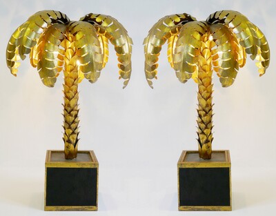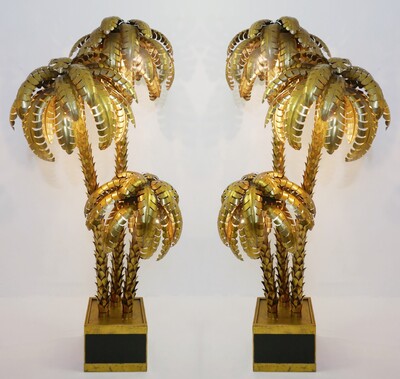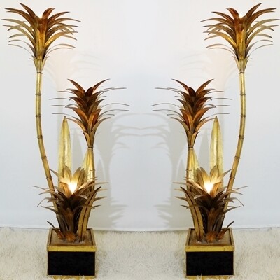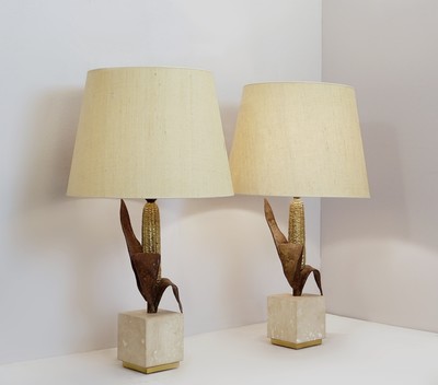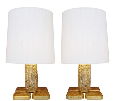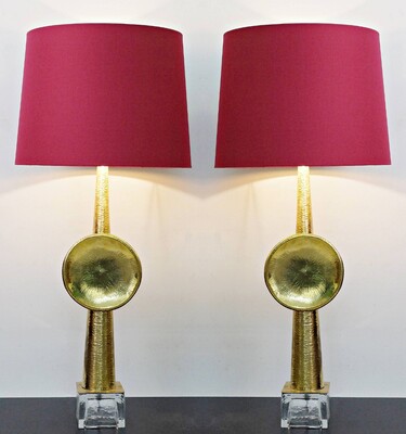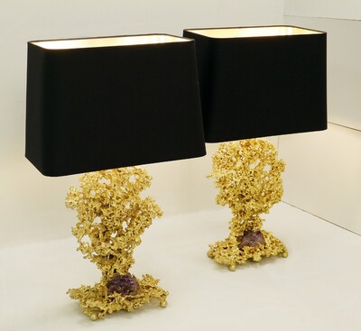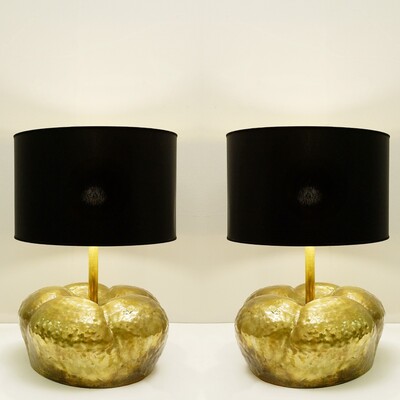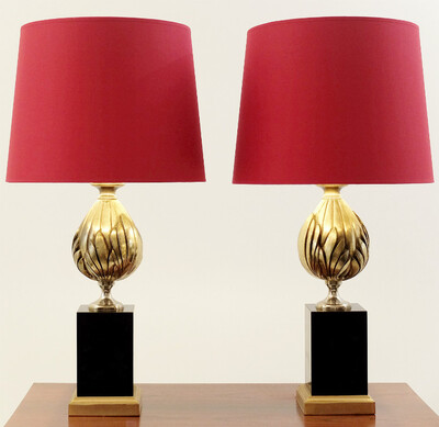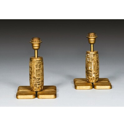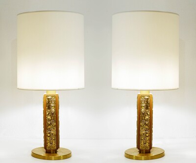 Pair oPair of Table Lamps in 24-Karat "Maho" by Georges Mathias, 1970s