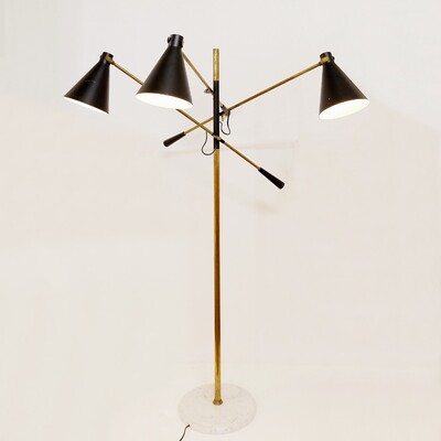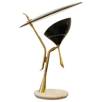 Mid-Century Modern Table Lamp Marble and Brass