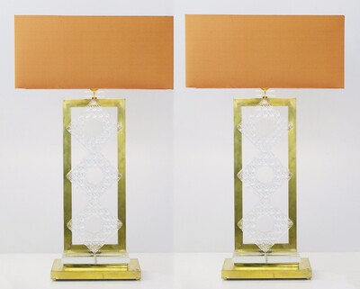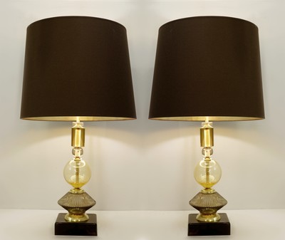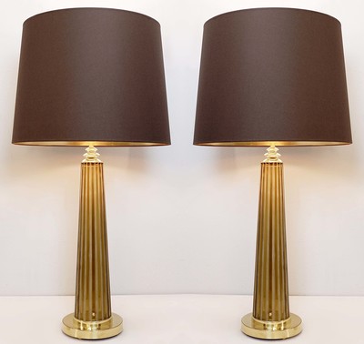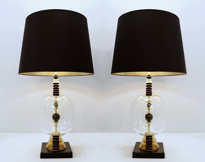 pair of brass and glass tubes table lamps - Italy