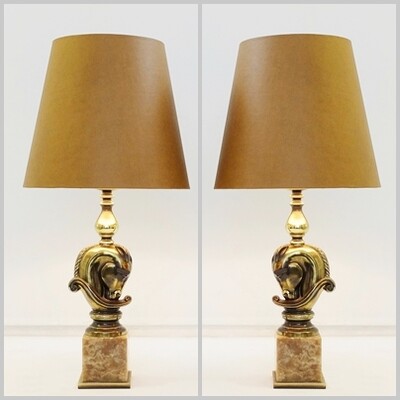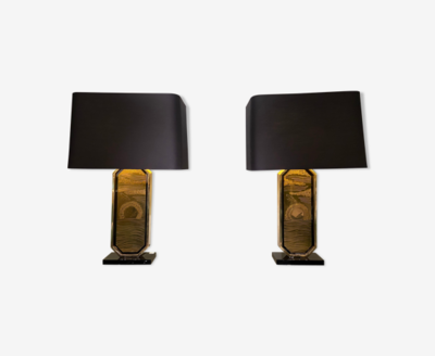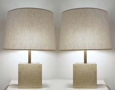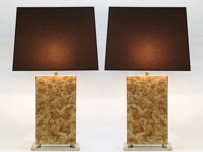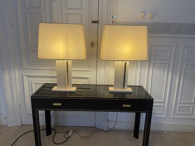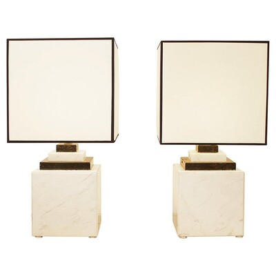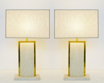 Pair Of Marble Lamp - 1980s