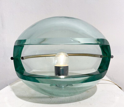 Mid-Century Modern Glass & Brass Table Lamp attributed to Pietro Chiesa, 1950s