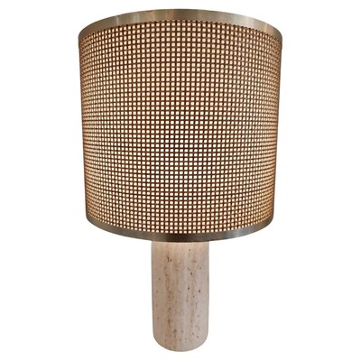 large travertine italian table lamp - rope lampshade - 1960s