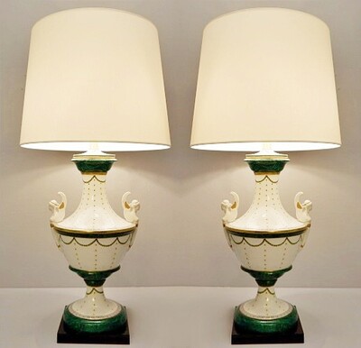 Pair Italian porcelain table lamps by Giulia Mangani, of Neo-classical urn form