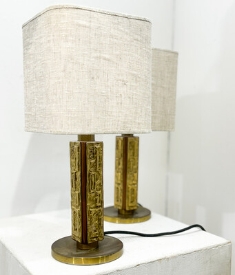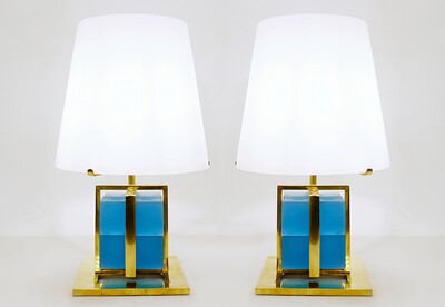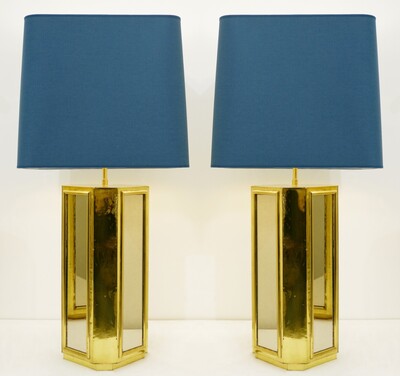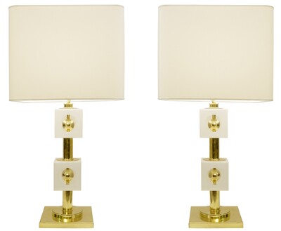 Contemporary Pair of Brass Table Lamps, Italy